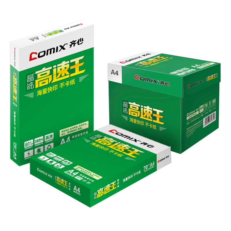 商品属性 [] 广东 [系列] 齐心 高速王 [克数] 70g [纸张大小] A4 [每包张数] 500张/包 [包数] 5包 [颜色分类] 白色 [环保清单] [质量等级] [原材料类别] [中国环境标志产品认证证书编号] 无 [中国环境标志产品认证证书有效期] [产品尺寸(mm)] [包装清单] [售后服务] [国别]
