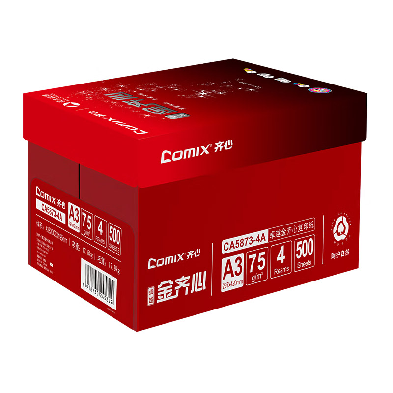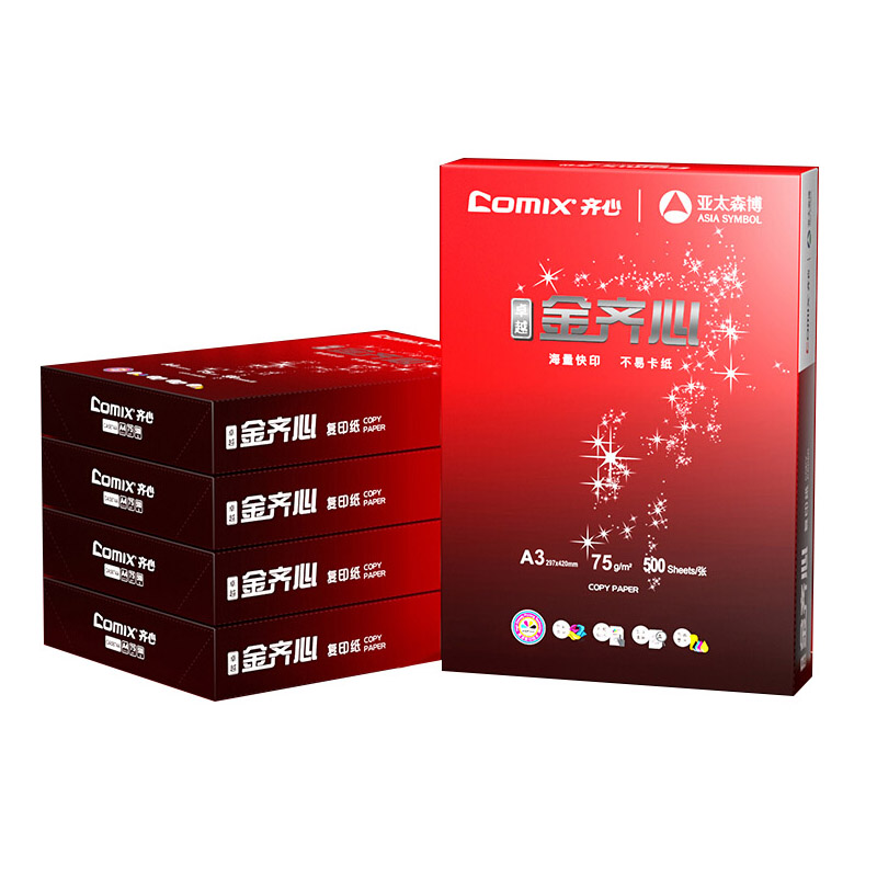 商品属性 [] 广东 [系列] 齐心 金齐心 [克数] 75g [纸张大小] A3 [每包张数] 500张/包 [包数] 4包 [颜色分类] 白色 [环保清单] [质量等级] [原材料类别] [中国环境标志产品认证证书编号] 无 [中国环境标志产品认证证书有效期] [产品尺寸(mm)] [包装清单] [售后服务] [国别]